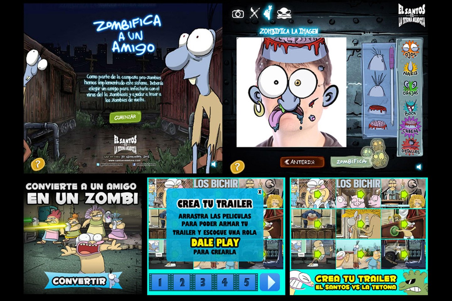 Creamos una app interactiva integrada a Facebook que permitía zombificar a tus amigos: El usuario interactuaba cargando una foto y añadía elementos gráficos de zombies y personajes de la película en estilo caricatura.